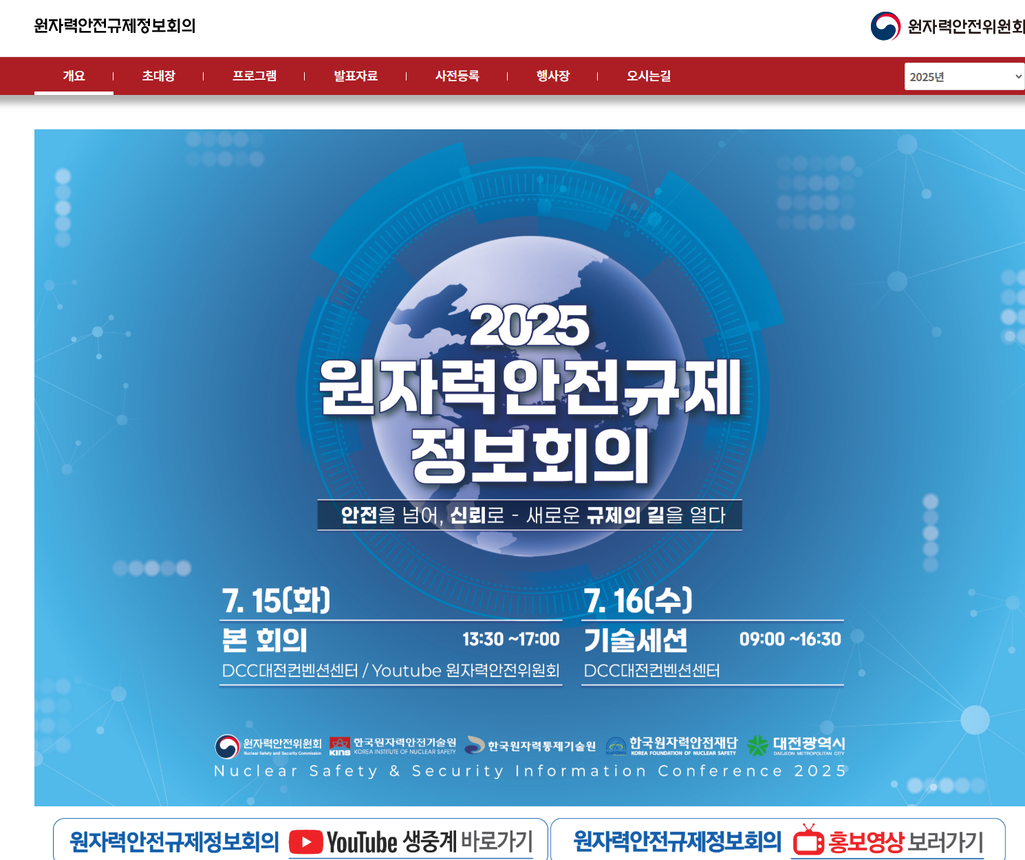사이트에 들어가면 당해년도 회의정보(일자, 장소) 및 유튜브 생중계 링크가 맞이해준다. (보통 과거 개최된 이력을 보면 6~7월에 대전에서 개최되는듯 하다.)