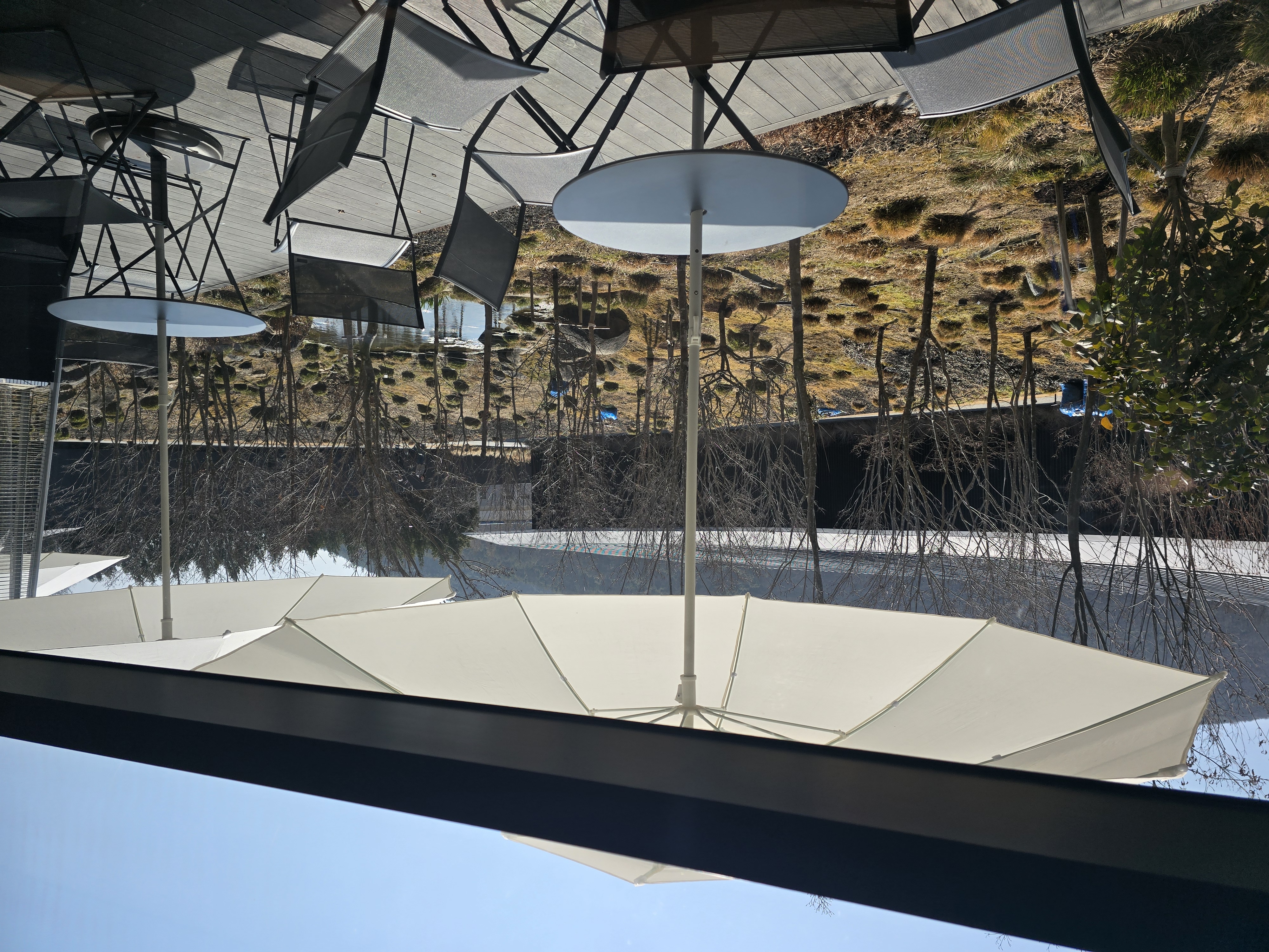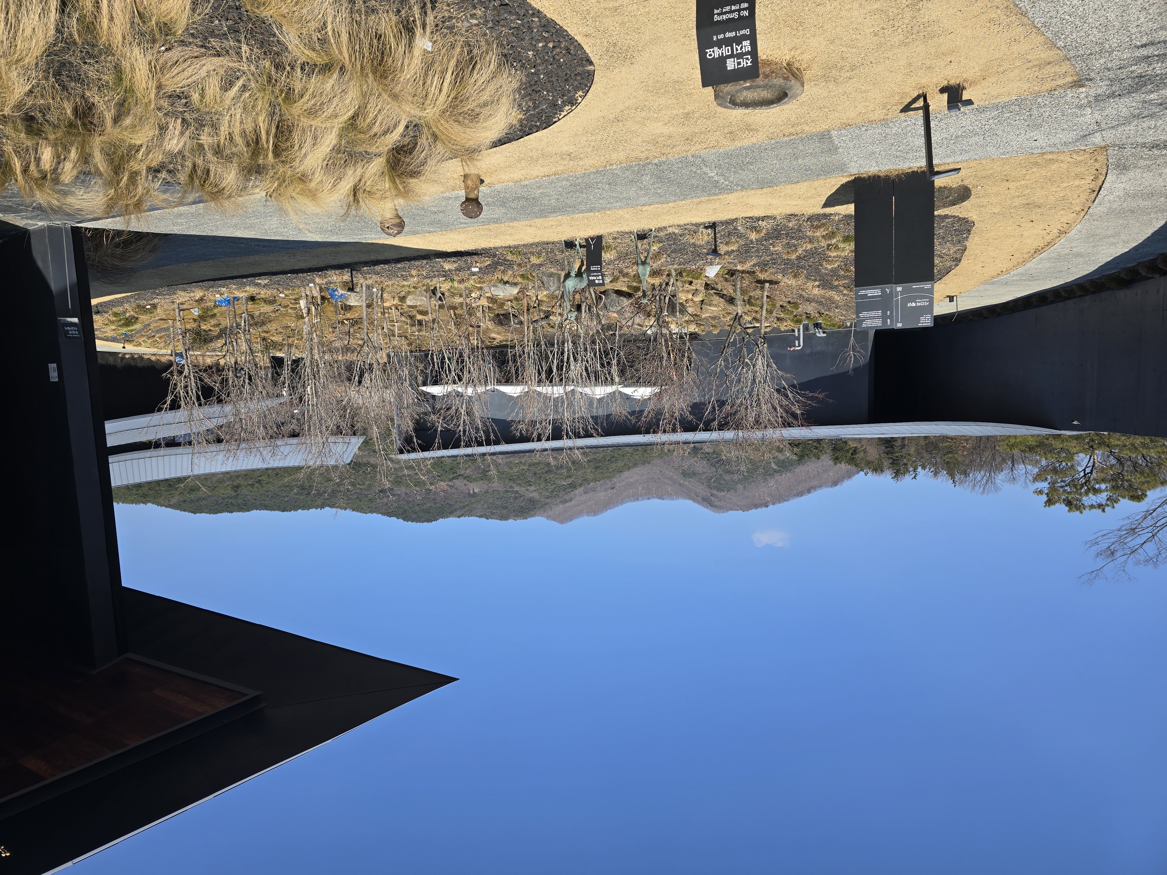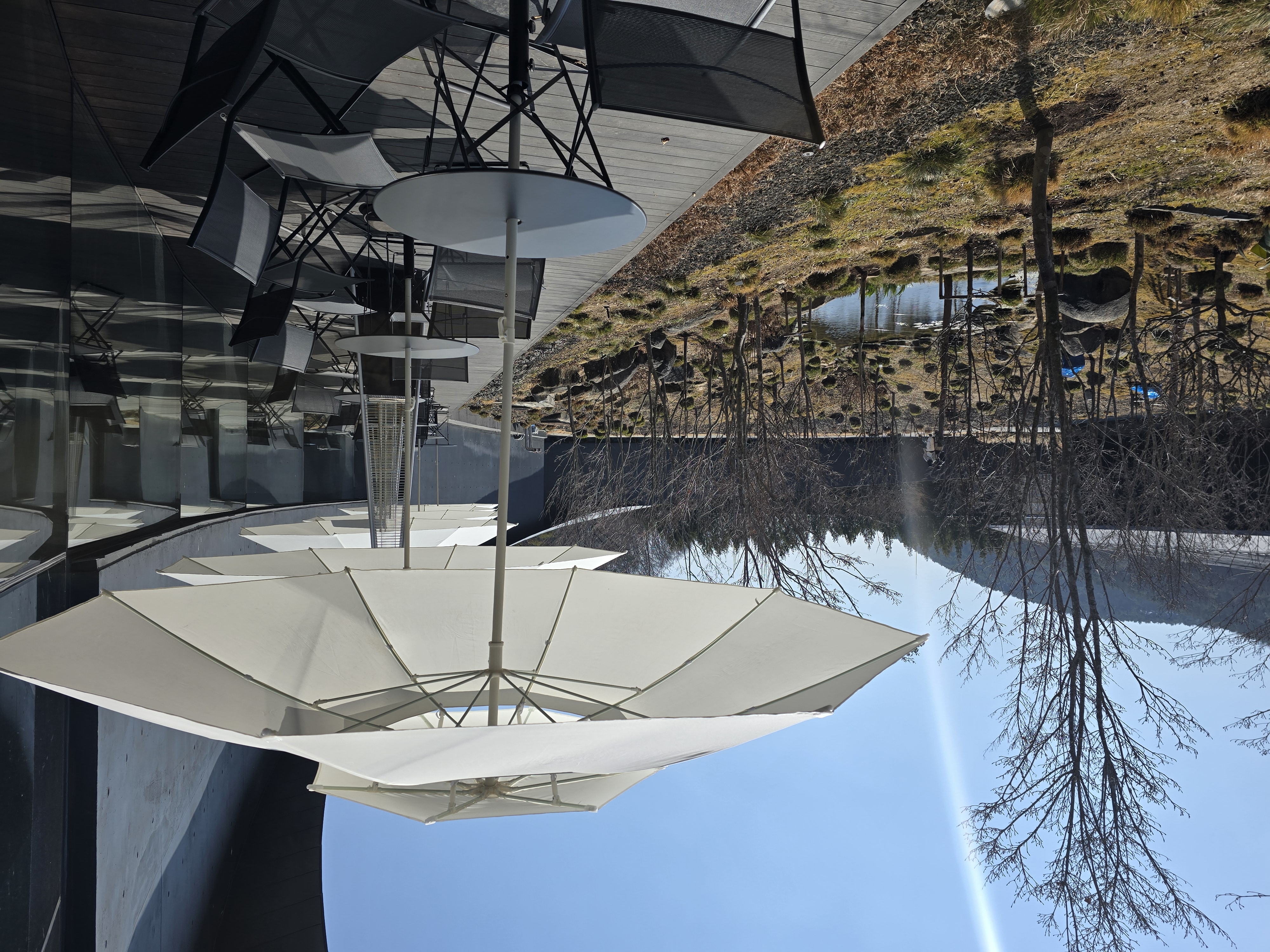 다소 웅장하지만 차가워 보이는 검은색 건축물 속 가운데에 생명이 있는 나무들과 연못속 물고기들이 공간을 보다 입체적으로 만들어 주는 것 같다고 느꼈다. 그리고 다소 정적으로 보이는 공간에 차분히 움직이는 생물이 더해져서 천천히 시간의 흐름을 느낄 수 있다고 해야하나? 이런걸 의도한건가 싶은 느낌이 들었다.