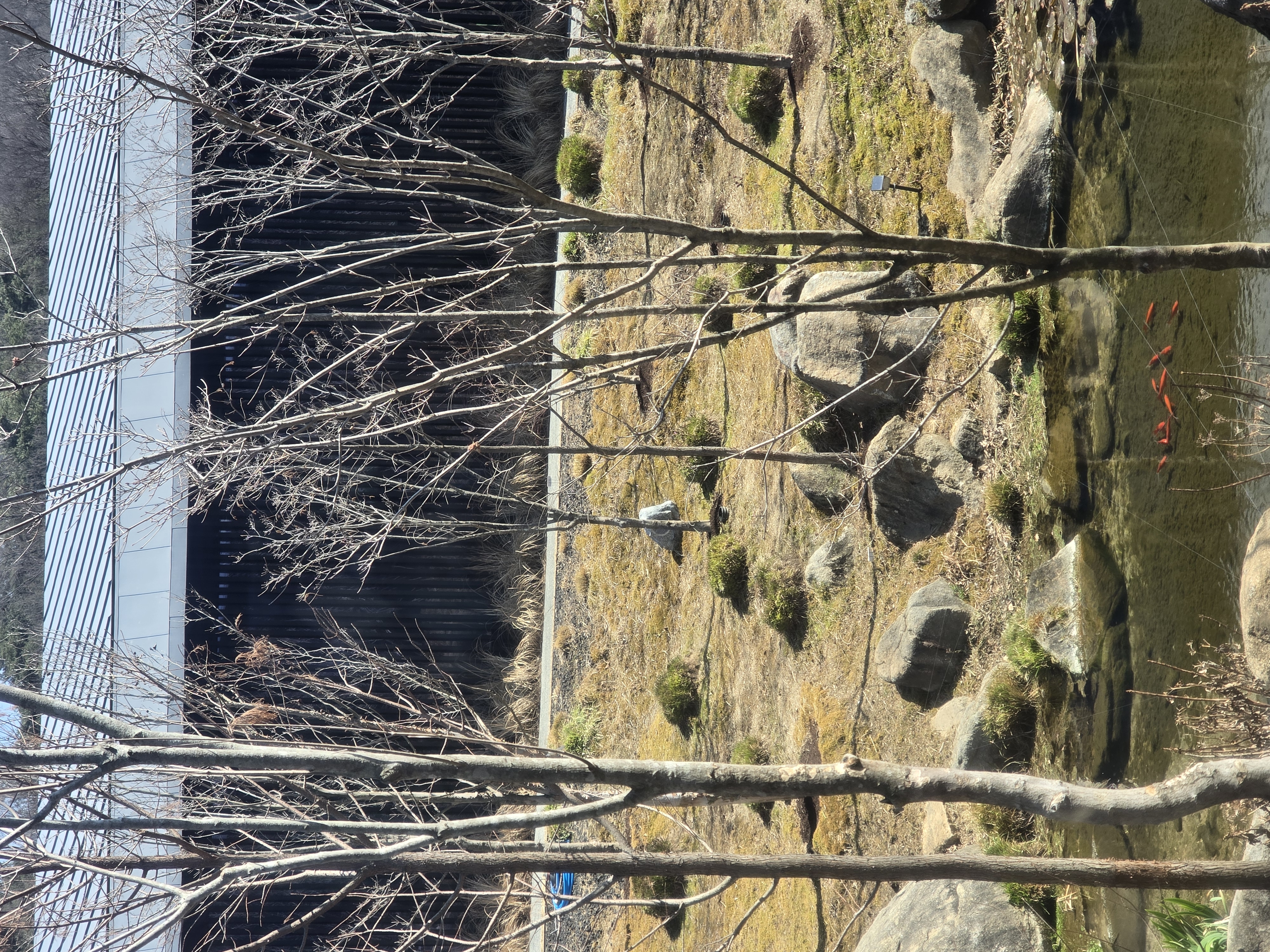 봄을 앞두고 정원과 연못 정돈작업이 진행 중이였다.