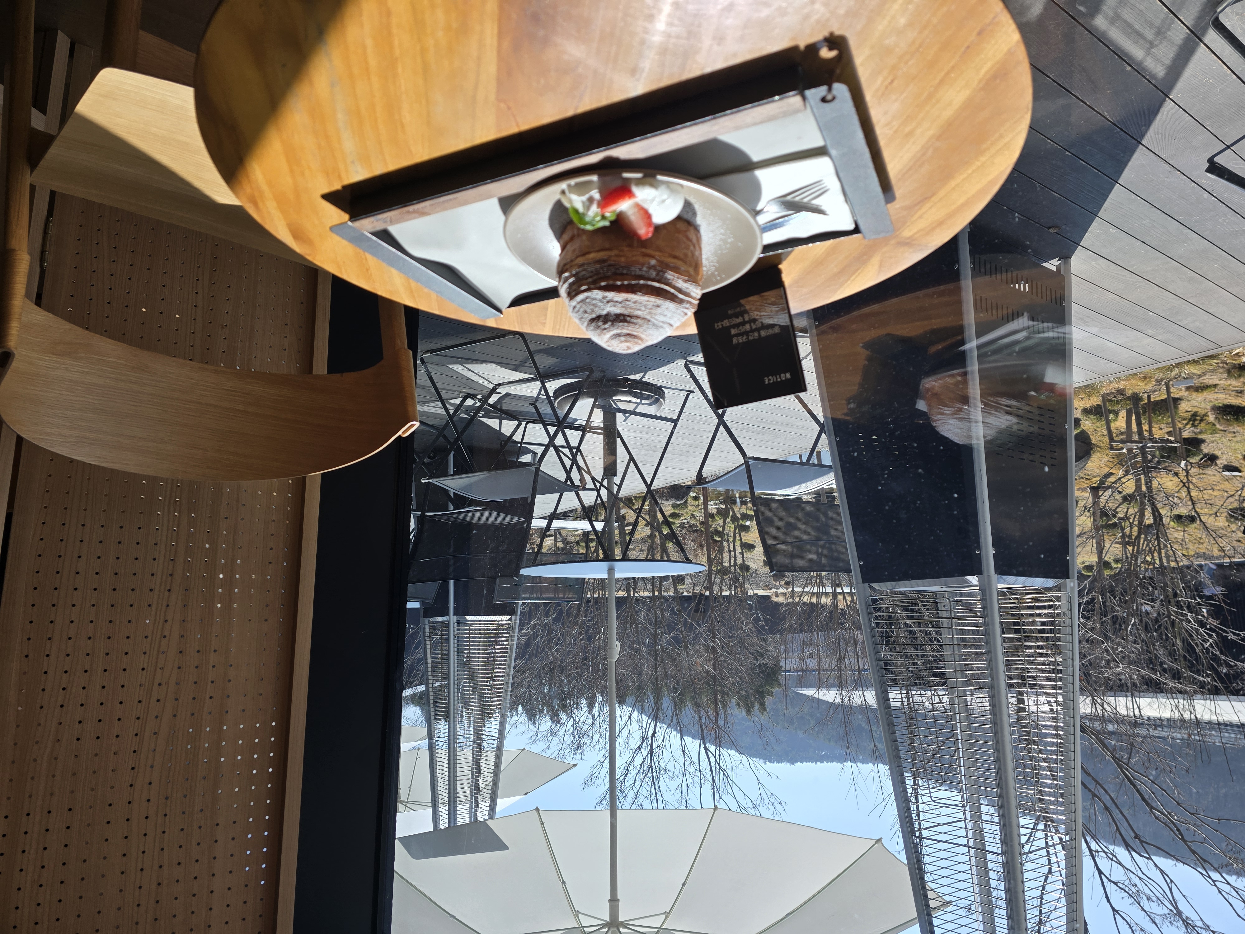 가기전에 커피를 잔뜩 시켜서 몽블랑만 주문했는데 크림이랑 딸기도 같이줘서 곁들여서 먹으니까 신선해서 맛있었다! 쟁반 위에 깔려있는 회색고무느낌의 깔판이 촉감이 맨질맨질해서 좋았다. (맥도날드에서 나오는 종이 이런게 아니여서 좋았다..)
