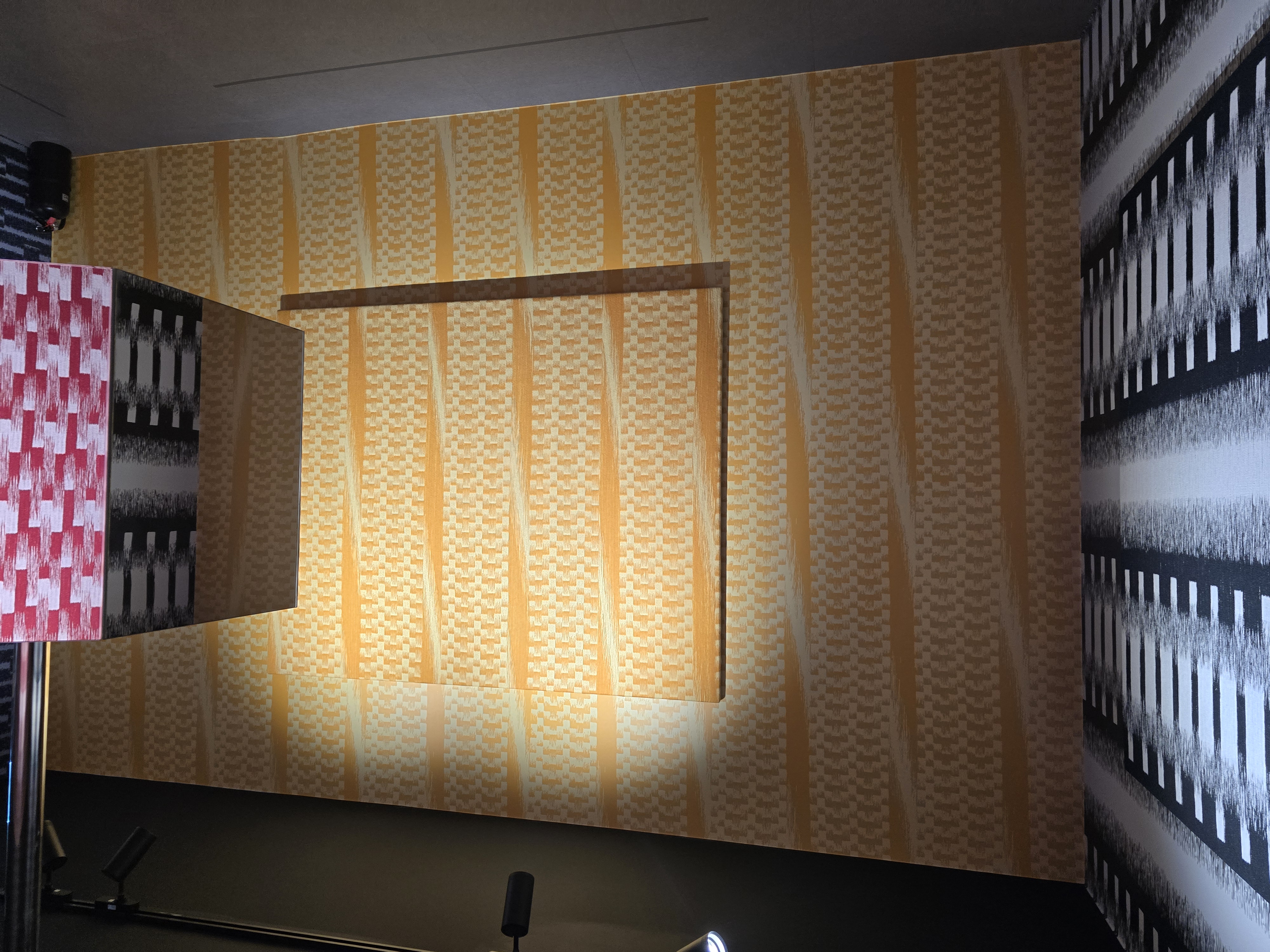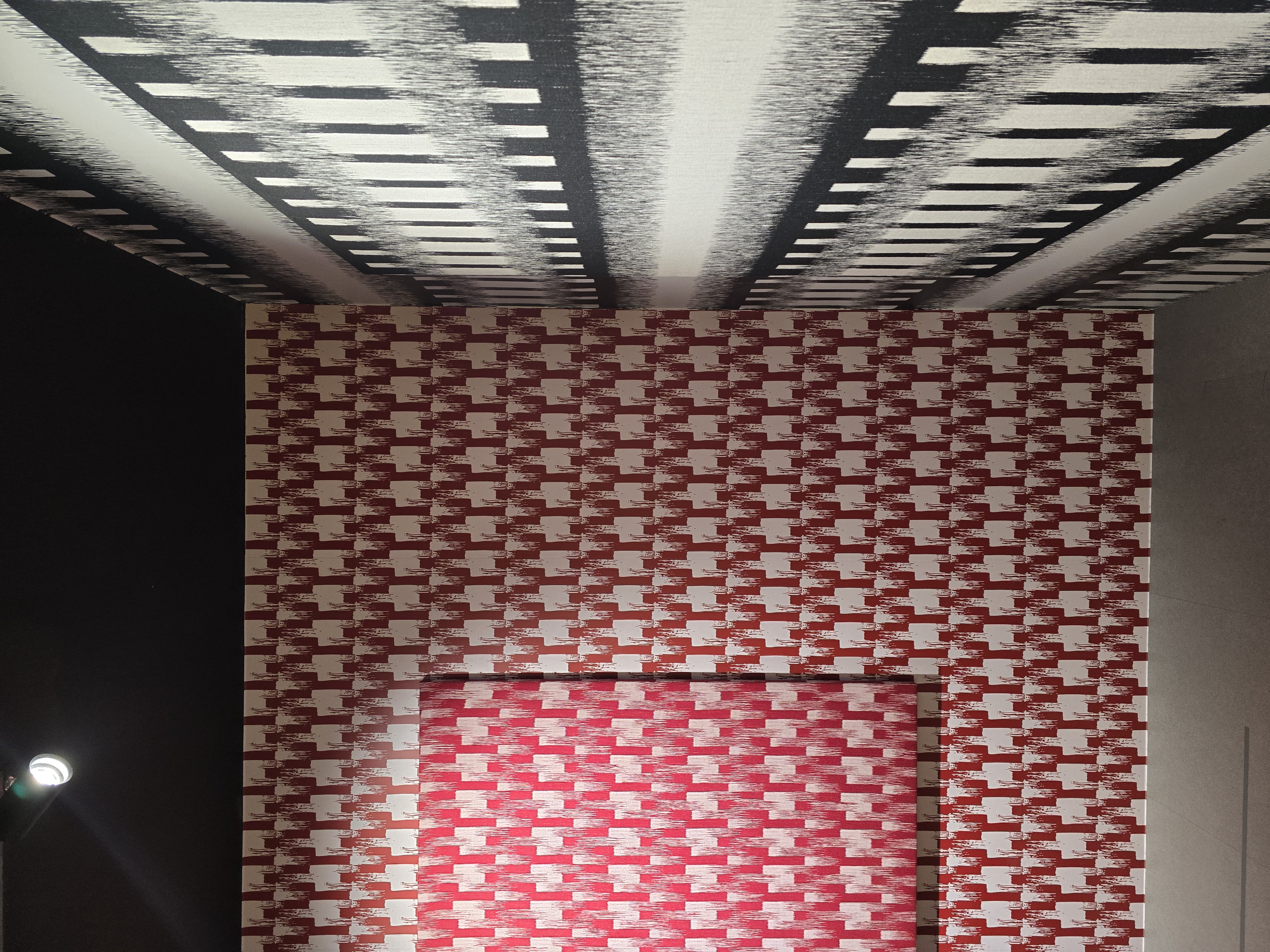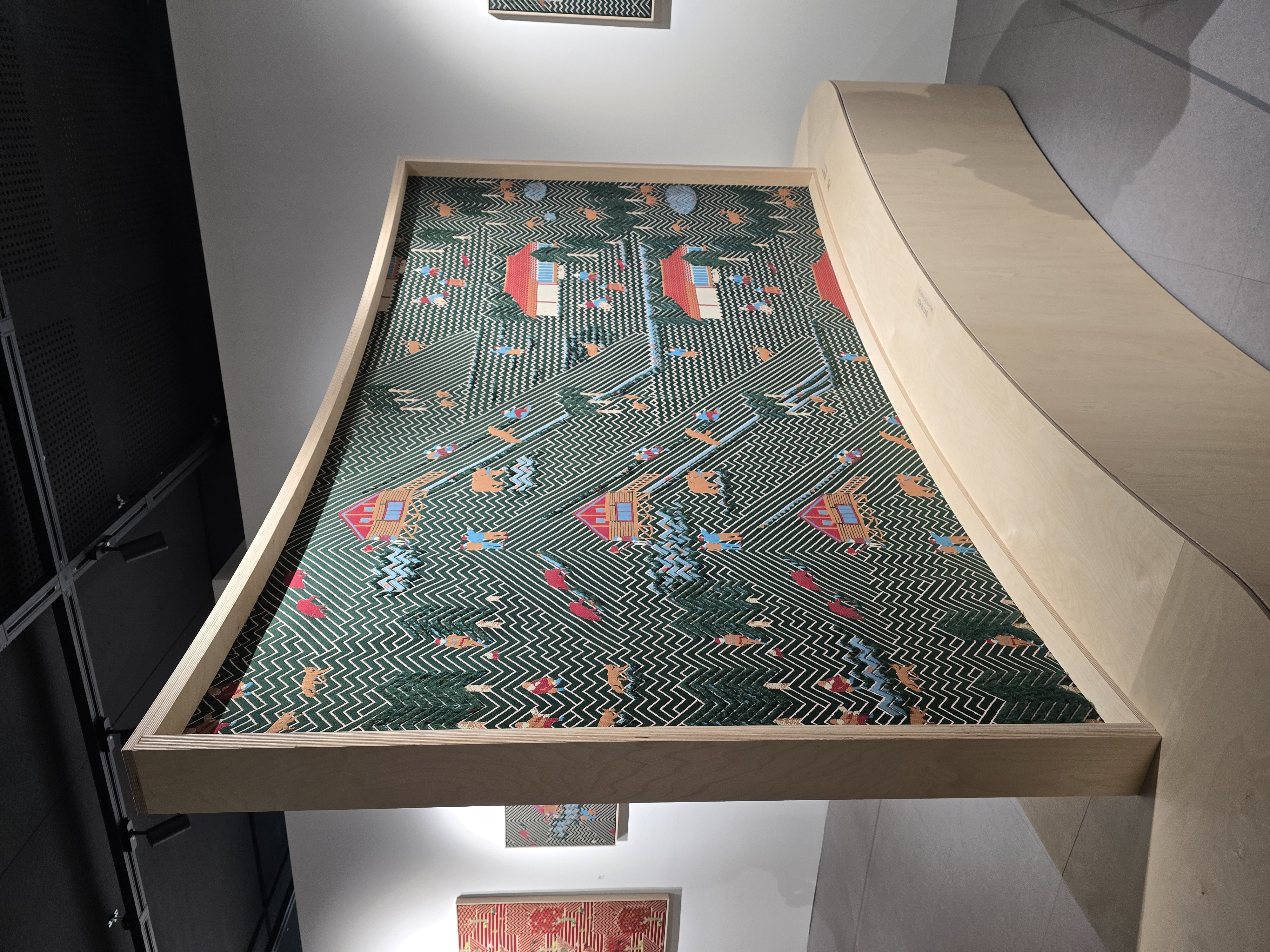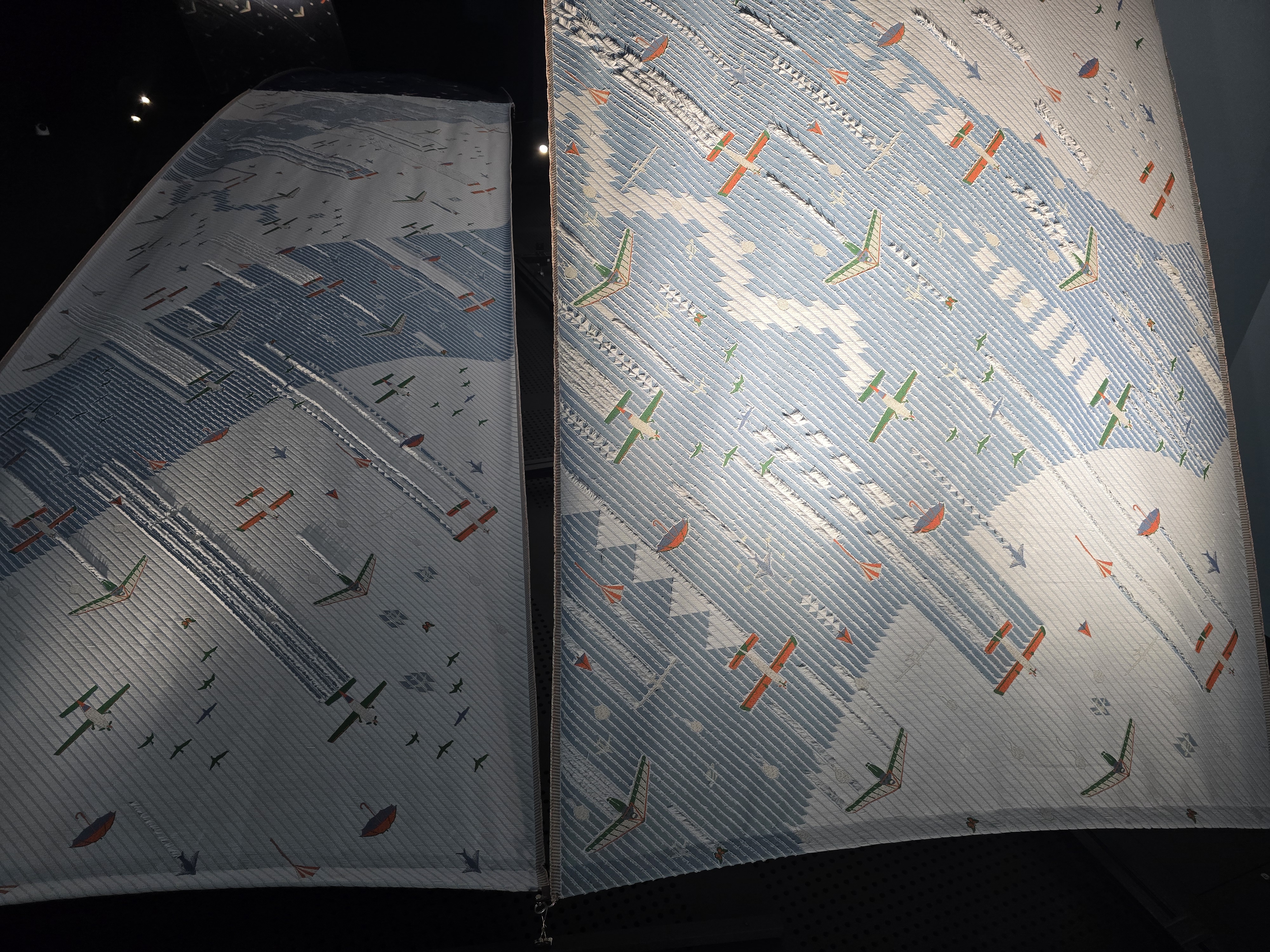 홀로그램이 천으로 구현이 가능한 기술이라는걸.. 오늘 처음 알았다, 홀로그램처럼 각 돌기가 좌/우 다른 면으로 칠해져 있어서 각도에 따라 작품이 다른 모습으로 보인다.