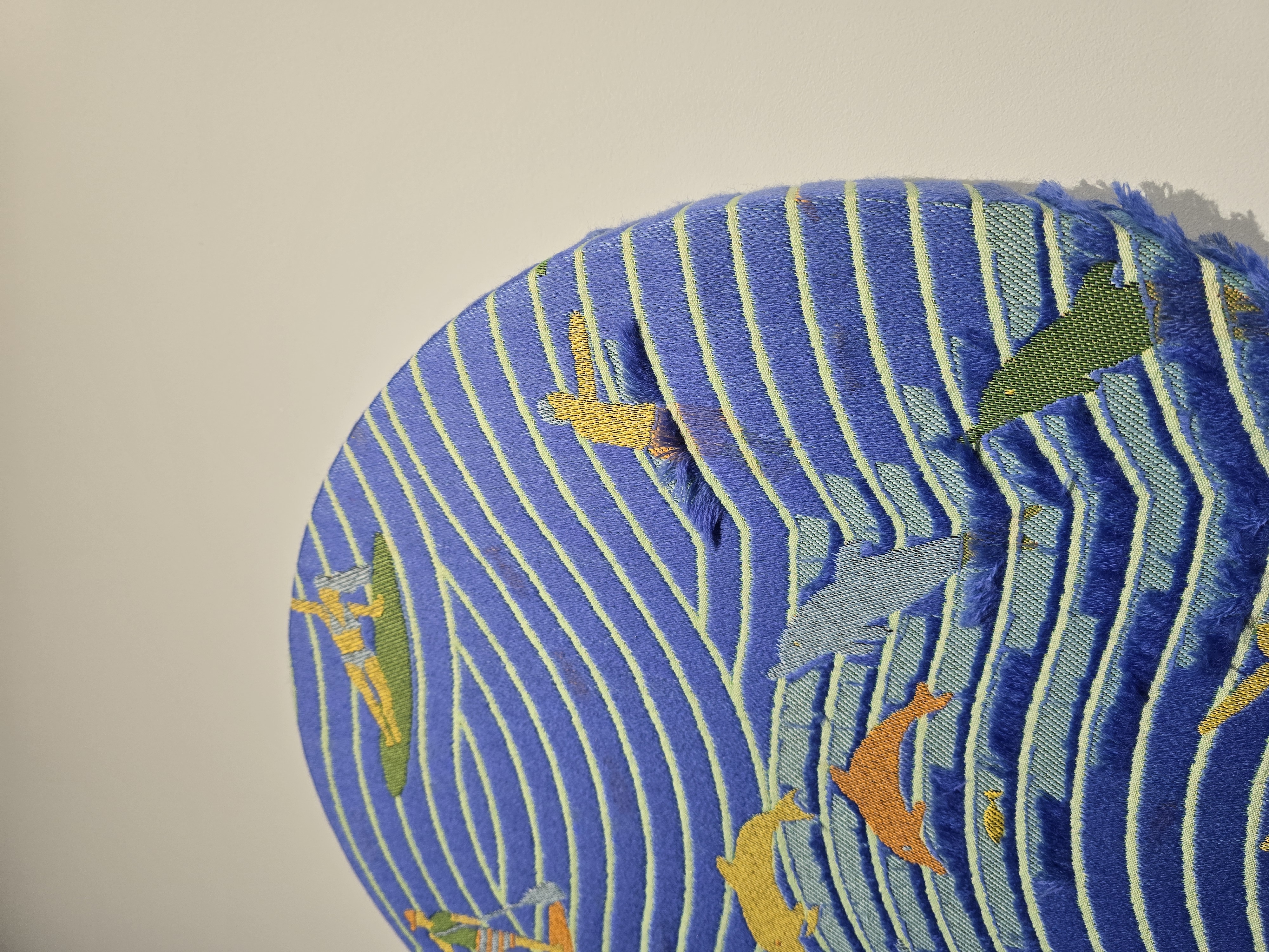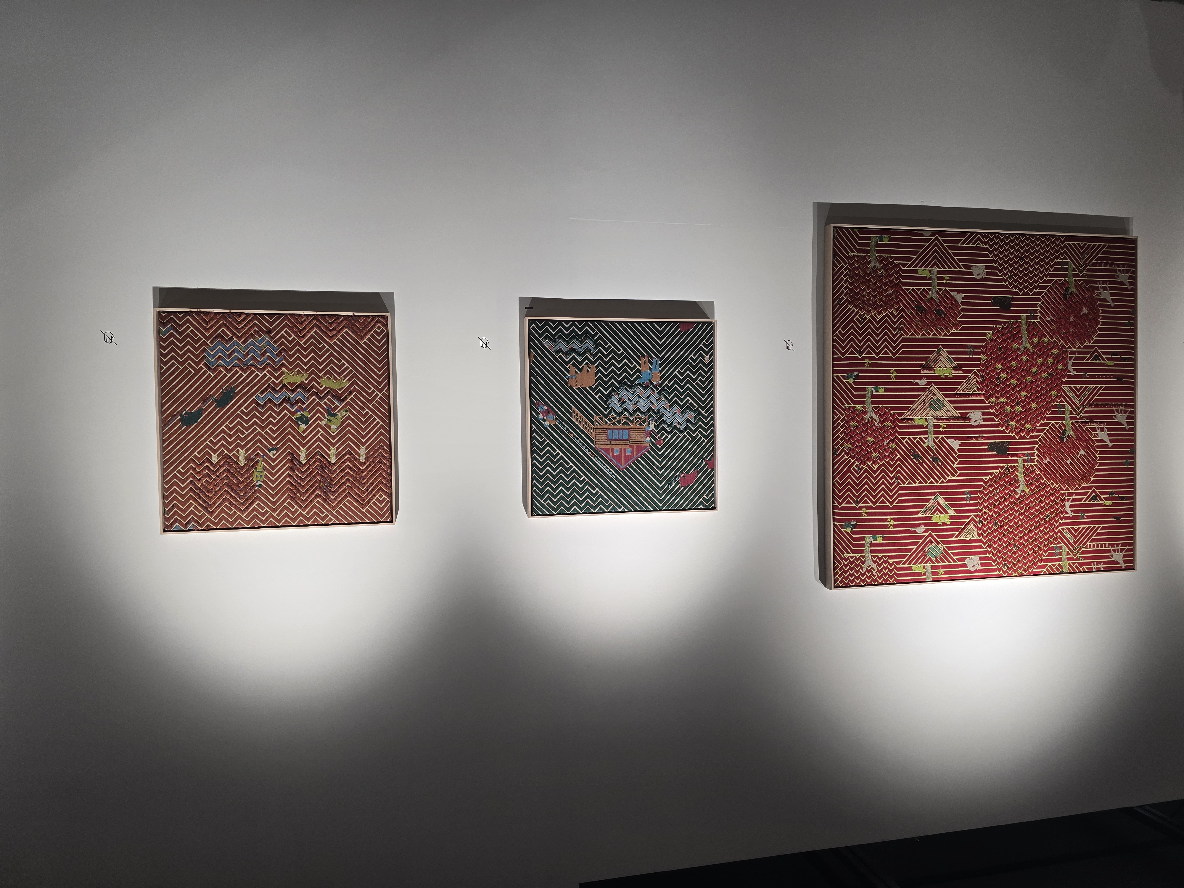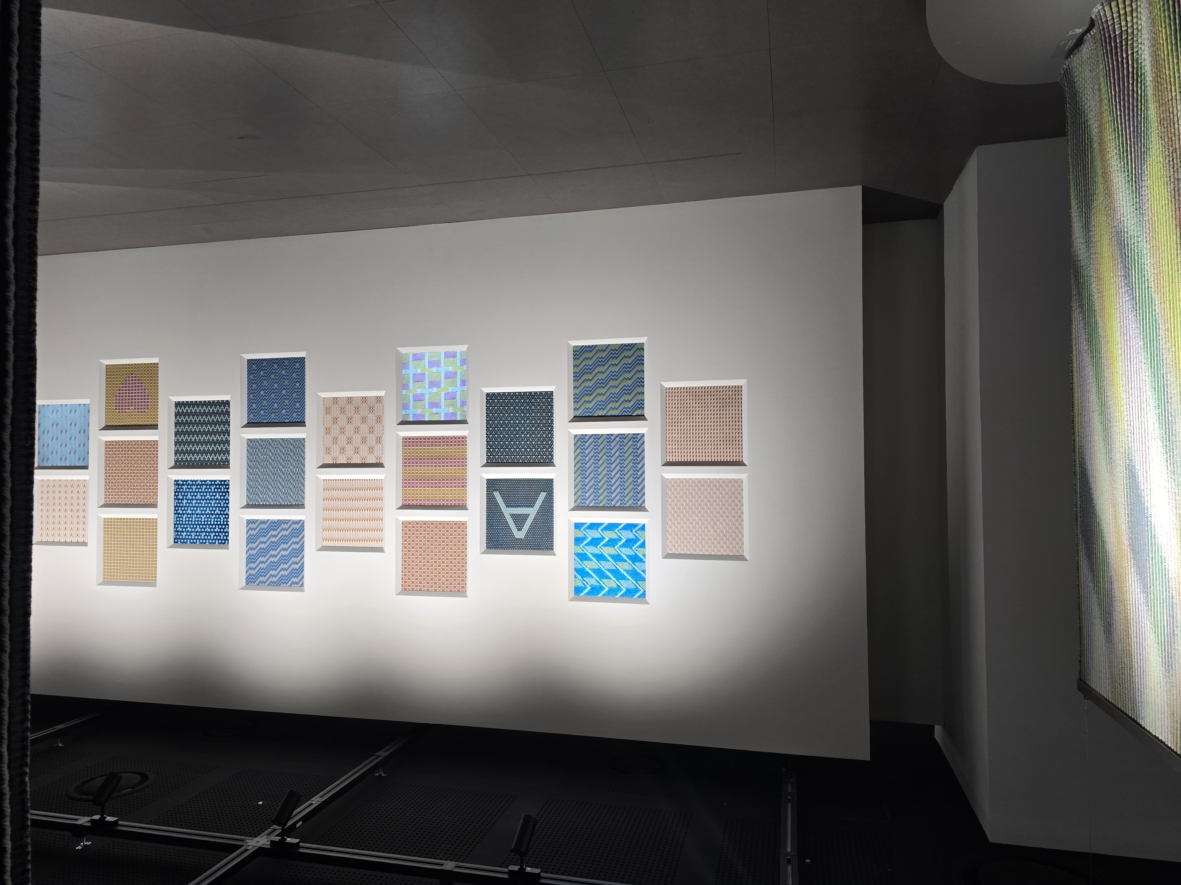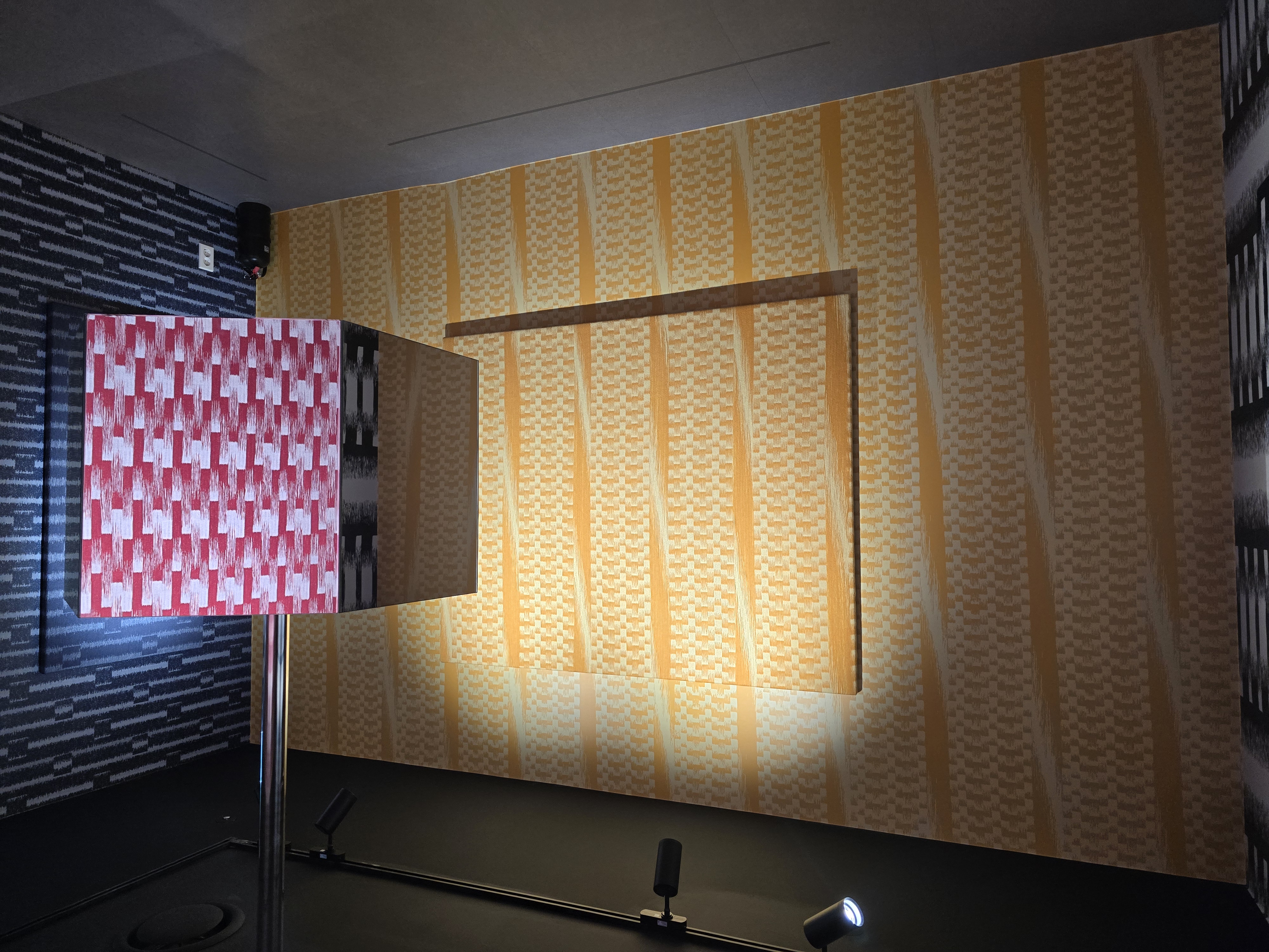 홀로그램이 천으로 구현이 가능한 기술이라는걸.. 오늘 처음 알았다, 홀로그램처럼 각 돌기가 좌/우 다른 면으로 칠해져 있어서 각도에 따라 작품이 다른 모습으로 보인다.