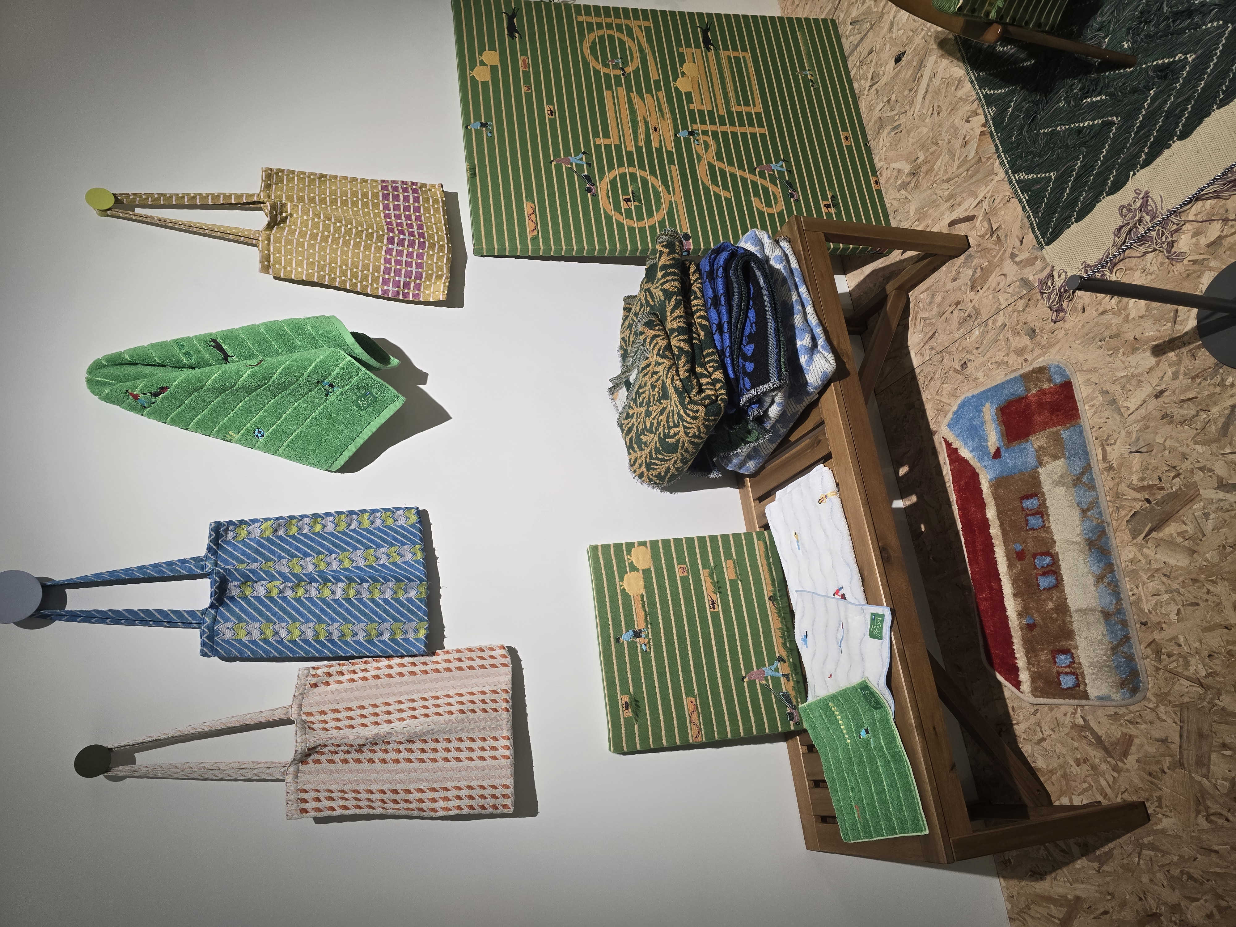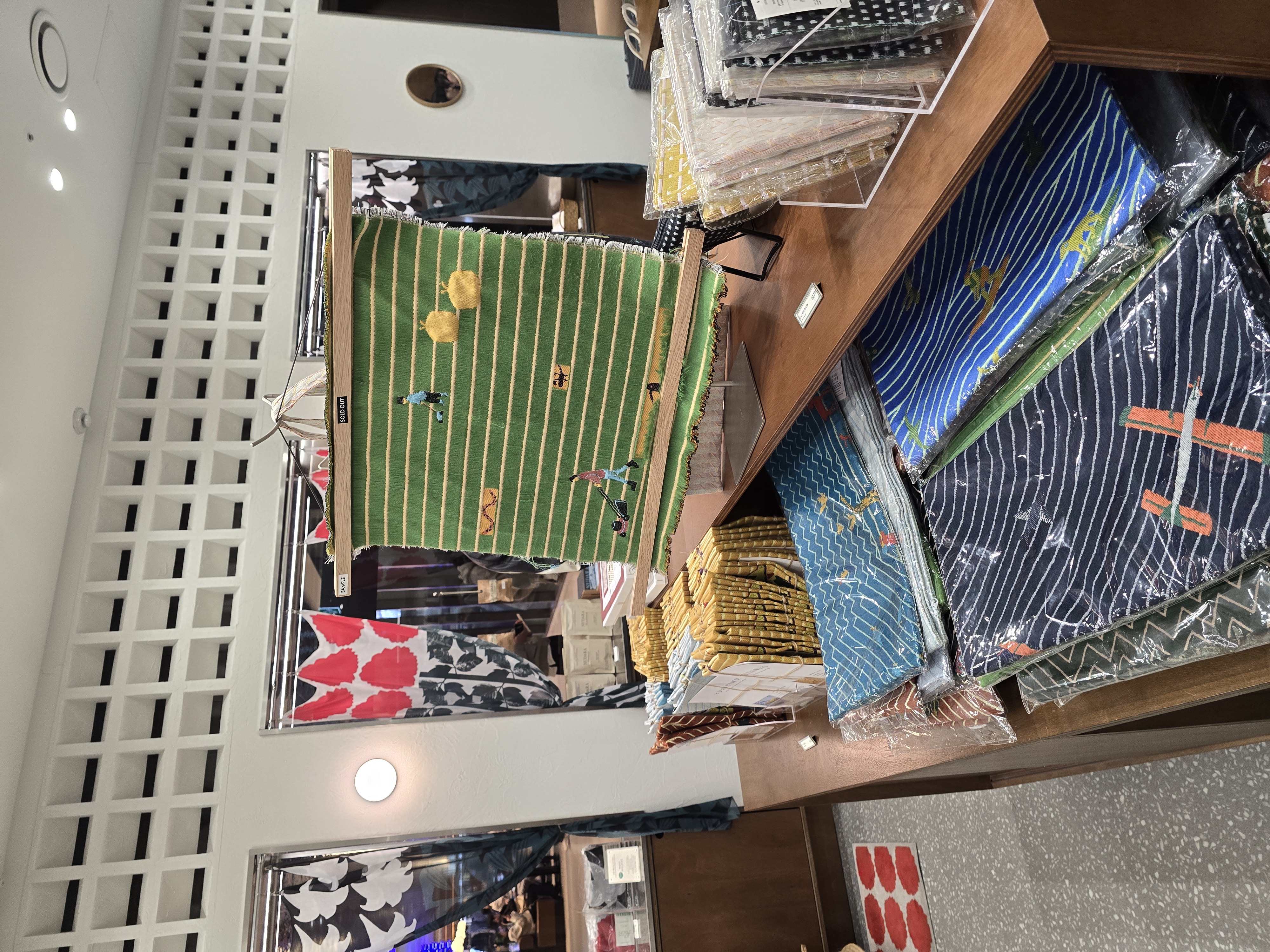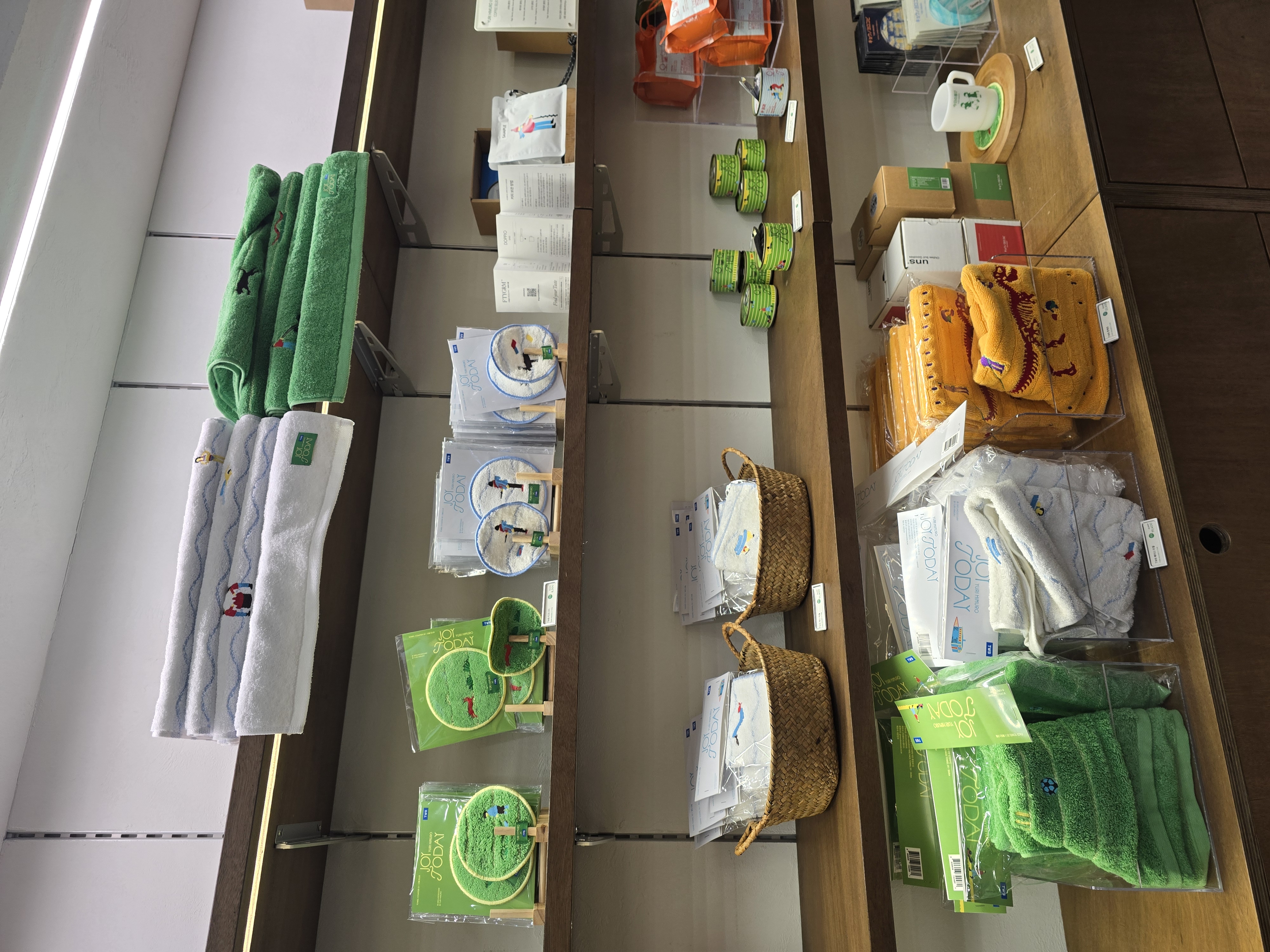 이제 굿즈샵으로 가보자. 생존한 작가의 직물작품들 전시이다보니 단순히 늘상 있는 도록, 마그넷, 엽서, 파일철, 안경닦이 굿즈 말고도 실용적인 다양한 굿즈들이 많이 있었다.