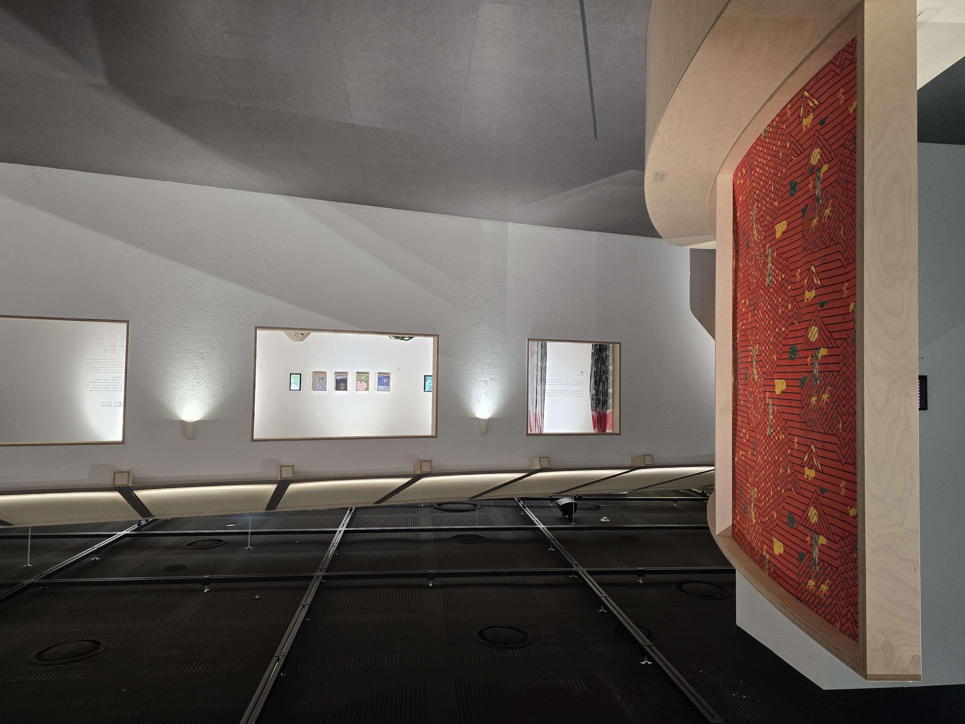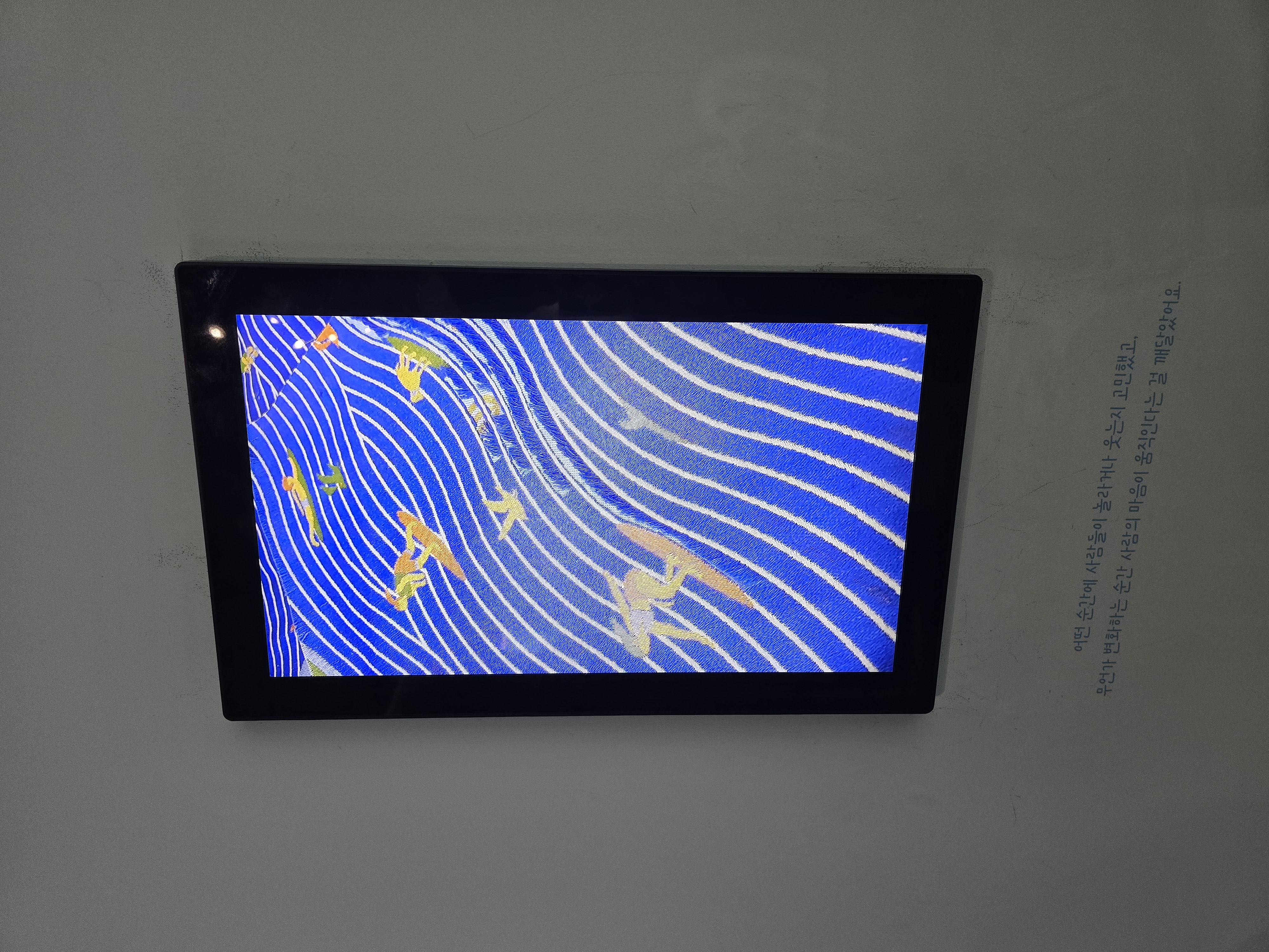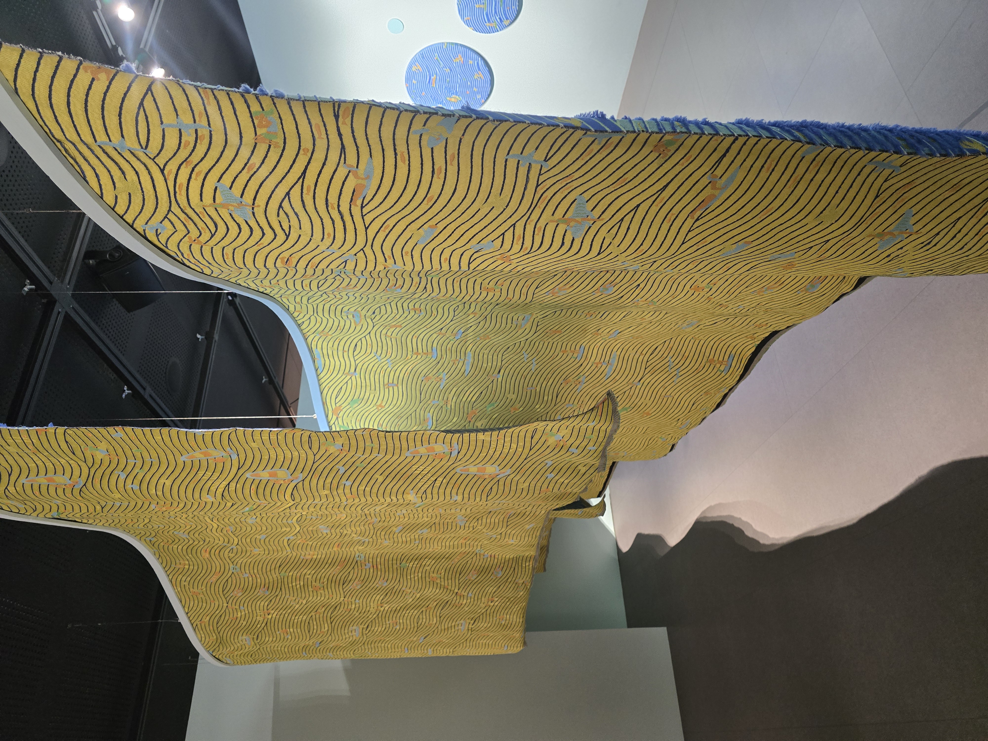 꽤나 웅장한 크기의 작품. 작품 자체는 면이라서 웅리는 파도속에 있는 사람들을 대각선으로 내려다 보는 모습이지만, 걸려있는 작품들이 파도 처럼 율동을 가지고 디스플레이가 되어있어서 공간감이 느껴졌다.