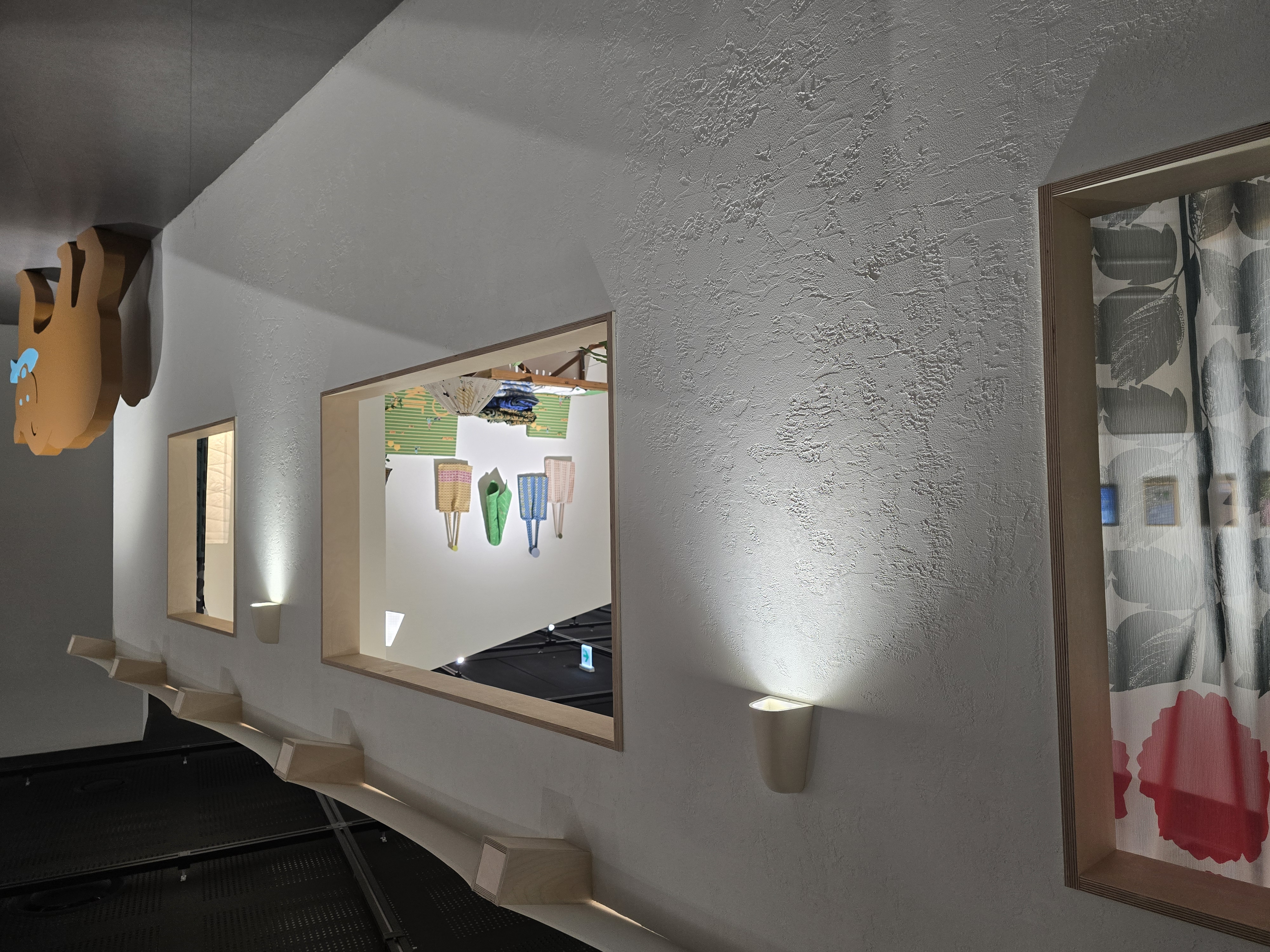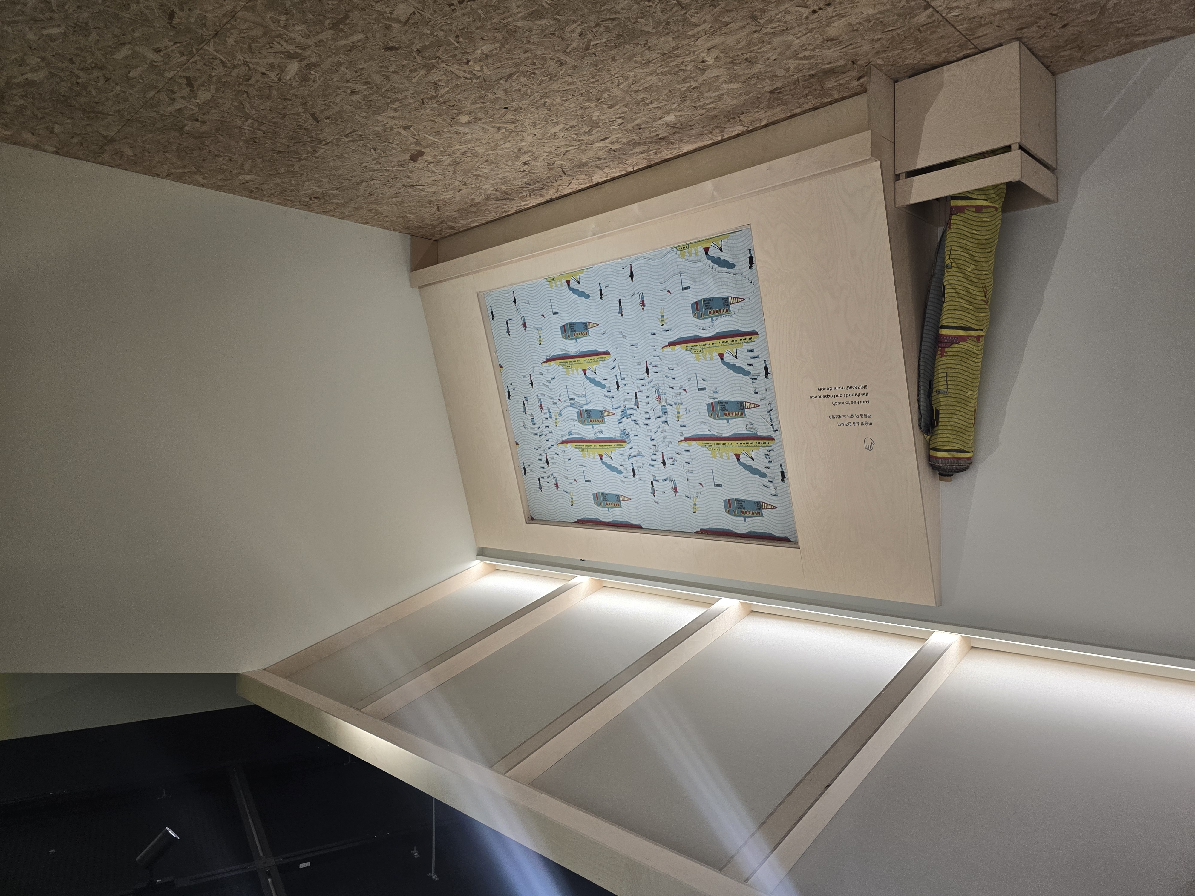 히무로 유리는 단순한 천 디자인을 넘어 천과 사람의 상호작용을 표현하는 작가이다. 그렇다보니 전시장에서 작품을 직접 만질 수 있는 공간도 있었다.