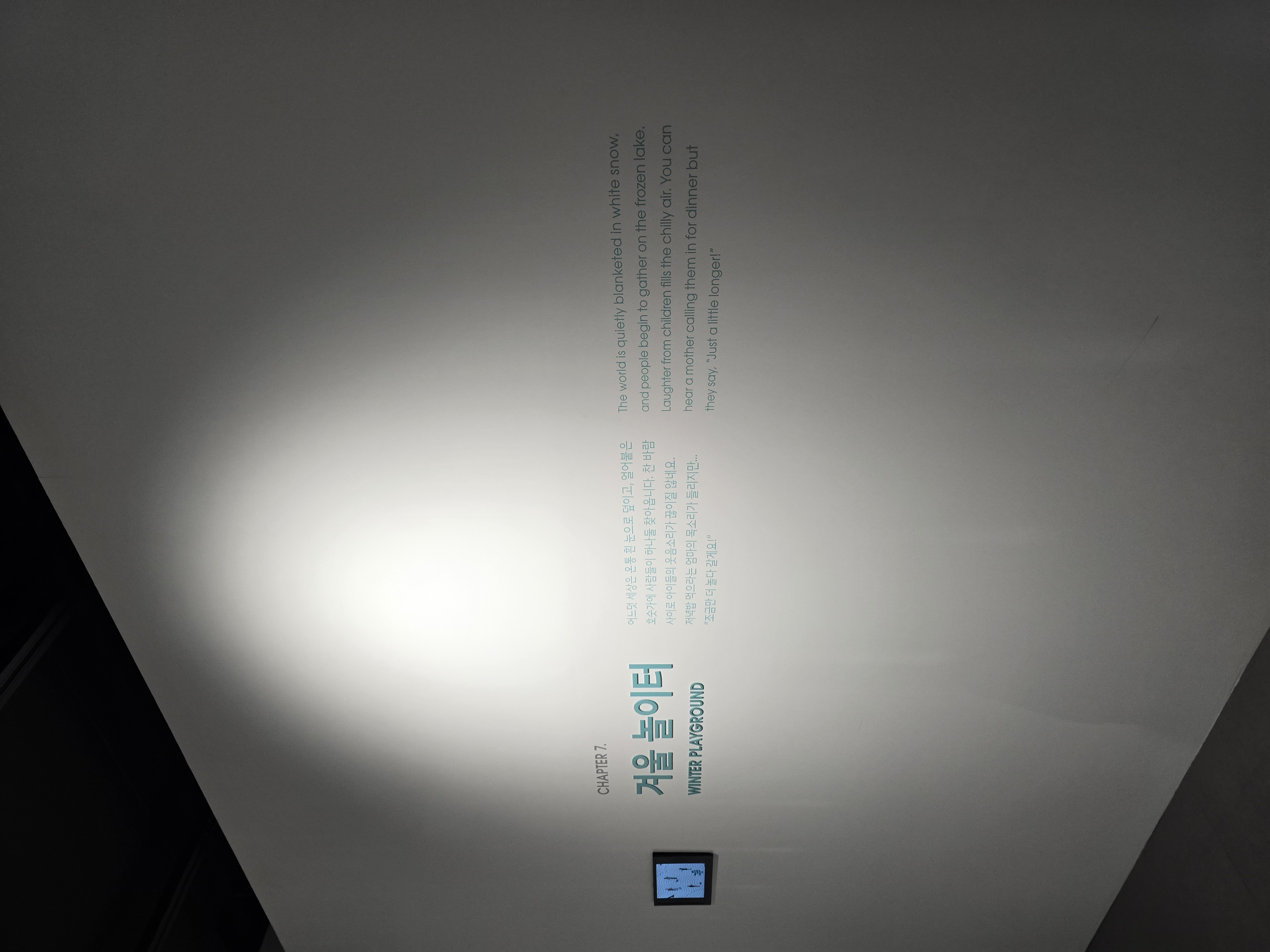 하늘 극장은 관람객이 하늘을 처다보는 기분을 느낄 수 있게, 작품이 위에 걸려있었다. 아이들을 생각해서인지 단순히 천장에 걸려있는게 아니라 유선형으로 올라가는 방식으로 걸려있었는데, 전시 준비의 세심하고 꼼함을 옅볼 수 있었다.